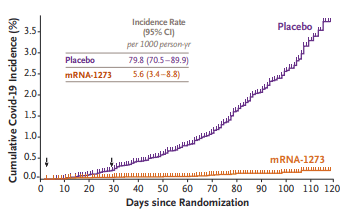 La pandemia de Covid-19 continúa y se expande. Se necesitan datos adicionales sobre las vacunas para prevenir la infección por el coronavirus coronavirus 2 (SARS-CoV-2) sintomática. La vacuna mRNA-1273 es una vacuna contra el ARNm encapsulada en lípidos que codifica la proteína de pico estabilizada prefusión de SARS-CoV-2.
