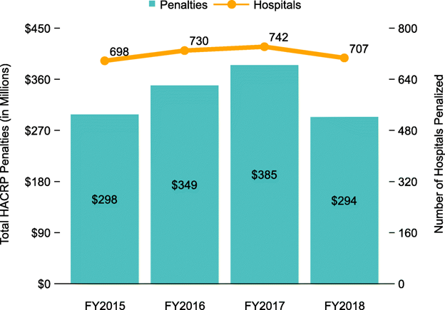 Las sanciones impuestas bajo HACRP son considerables (Fig. 1 ). Si bien las primeras evaluaciones de HACRP informaron reducciones acumulativas en las condiciones adquiridas en el hospital [ 1 , 2 ], estudios más recientes [ 3 – 7 ] no han encontrado una asociación clara entre la recepción de la penalización HACRP y la calidad de la atención hospitalaria. Por ejemplo, evidencia reciente sugiere que los hospitales penalizados por HACRP tenían más acreditaciones de calidad, ofrecían un mayor número de servicios avanzados, eran importantes instituciones de enseñanza y tenían un mejor desempeño en otros procesos y medidas de resultado [ 7]. Otra investigación encontró que bajo HACRP, CMS asignó diferentes puntajes a hospitales cuyo desempeño era estadísticamente igual y penalizó al 25% de los hospitales independientemente de la significación estadística de la diferencia entre su desempeño y otros [ 4 ].