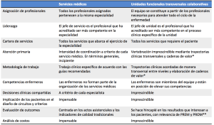 Cuadro diferencial entre servicios médicos y unidades funcionales transversales y colaborativas Varela Jordi 2021.