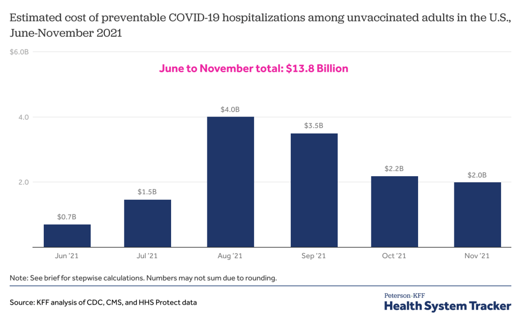 Desde junio hasta noviembre de 2021, las hospitalizaciones evitables por COVID-19 entre adultos no vacunados costaron en EE.UU más de $13 mil millones