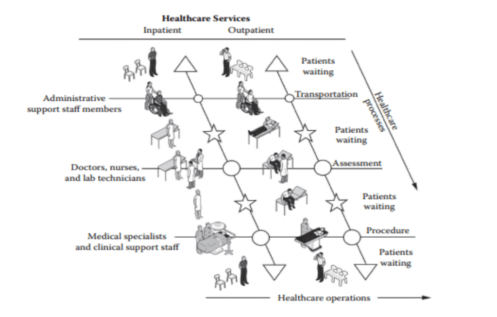 Sin embargo, será más productivo comenzar con el progreso del paciente a través de los principales procesos de atención médica: los procesos clínicos como la atención ambulatoria y hospitalaria.