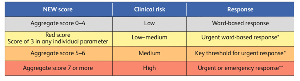 En la actualidad esta escala se ha convertido en una herramienta útil para el médico de urgencias ya que se ha constituido como una herramienta útil para realizar el triage inicial además de tener otros usos como por ejemplo el ayudar a identificar mejor a los pacientes con probabilidad de cursar con sepsis inclusive con mayor sensibilidad que el Quick Sofa y la necesidad de requerir de intervenciones médicas tempranas destacando que un puntaje de NEWS de 5 o más como el punto de umbral clave para determinar una respuesta urgente además de reconocer la desaturación por oximetría de pulso o la necesidad de oxigeno suplementario y el deterioro neurológico como datos clínicos de inestabilidad clínica en el paciente que los presenta.