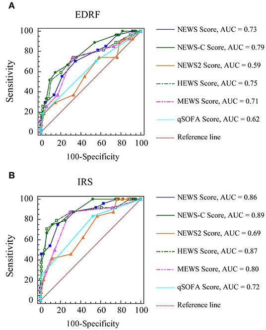 Conclusiones: NEWS-C fue el sistema de puntuación más preciso entre los EWS comunes para identificar pacientes con COVID-19 en riesgo de EDRF y necesidad de IRS. El NEWS-C podría recomendarse como una herramienta de clasificación temprana para pacientes con COVID-19.