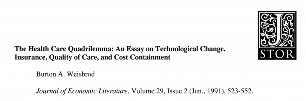 El cuatrilema sanitario calidad, aseguramiento, cambio tecnológico y contención de costes) de la asistencia sanitaria que la propuesta pasa por un análisis cuatrilógico con medidas de efectividad, cobertura, innovación y contención del gasto.