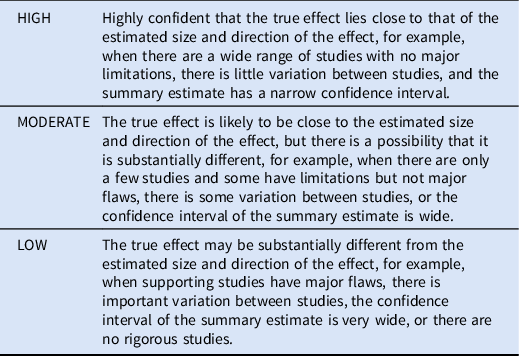 Las recomendaciones resultantes de este proceso de revisión de la literatura se clasificaron en función de la calidad de la evidencia y el equilibrio entre los efectos deseables y potenciales de las diversas intervenciones (Tabla 2 ). Los miembros del panel se reunieron por videoconferencia para discutir los hallazgos de la literatura; recomendaciones; calidad de la evidencia para estas recomendaciones; y clasificación como prácticas esenciales, prácticas adicionales o cuestiones no resueltas. Los miembros del panel revisaron y aprobaron el documento y sus recomendaciones.
