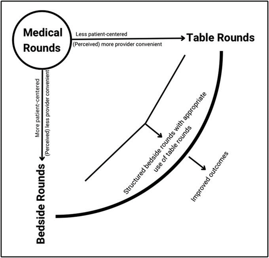 15. Ricotta DN, Smith CC, McConville JF, Leeper CM.. Bedside rounds vs. board rounds in graduate medical education: a narrative review. Am J Med. 2020;133(8):901–906. doi: 10.1016/j.amjmed.2020.03.022. [PMC free article] [PubMed] [CrossRef] [Google Scholar]