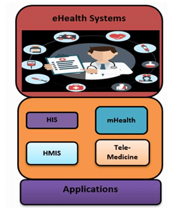 Telemedicina extiende el acceso a la atención médica a ubicaciones remotas, lo que permite a los pacientes consultar con médicos sin visitas físicas. Mobile Health (m-health) aprovecha la tecnología móvil para el monitoreo de la salud y el intercambio remoto de datos. El Sistema de Información Hospitalaria (HIS) actúa como un eje central, interconectando varios hospitales