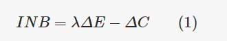 Dónde lambda es el valor umbral para los efectos y ΔE y ΔC son efectos y costos incrementales. INB positivo implica invertir, mientras que 0 o INB negativo implica no invertir. Las métricas de beneficios netos tienen una serie de ventajas sobre los índices incrementales de costo-efectividad (ICER) ( 9 – 17 ).