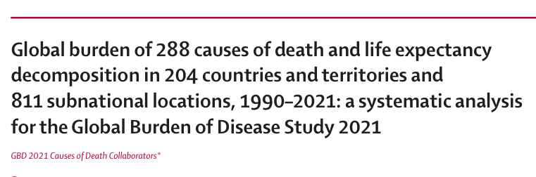 Durante más de tres décadas, el Estudio de la Carga Global de Enfermedades, Lesiones y Factores de Riesgo (GBD, por sus siglas en inglés) ha estado registrando y analizando de manera sistemática y exhaustiva las causas de muerte humana estratificadas por edad, sexo y tiempo en todo el mundo.