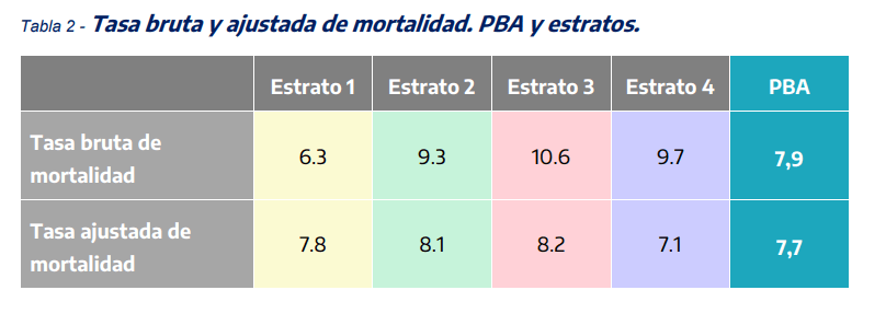 Este sesgo ideológico de la fundación es condicionante en algunas de las funciones de la salud pública como planificación sanitaria, la cobertura asistencial nominalizada, la financiación necesaria para llevar adelante dicha planificación y adecuar la oferta de servicios, la gestión de los centros, de las redes y de los contratos con las agremiaciones y corporaciones, la producción asistencial para satisfacer esas necesidades. Leyendo informes oficiales de la situación epidemiológica de la salud en la provincia de buenos aires se observa la intolerable y flagrante desigualdad, como muestro con en el gráfico del informe los cuatro estratos del nivel socio económico, siendo esto una decisión valiente para analizar: