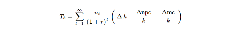 λ∗=p∗NIPP+∆npc+∆mcTbN+∆npck+∆mck(7)Si los costos adicionales de fabricación y no relacionados con el producto son cero, entonces esto se simplifica a: