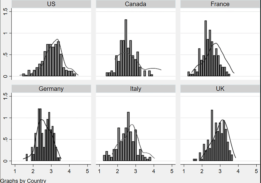 Además de las clasificaciones por países, una característica adicional de las prácticas de gestión en los hospitales públicos y privados se refiere a su distribución dentro del país. En otras palabras, vamos más allá de los promedios de los países e investigamos la distribución real de las prácticas de gestión en los hospitales públicos y privados. En