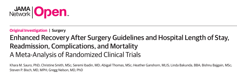 Pregunta: ¿La adopción de pautas de recuperación mejorada después de la cirugía (ERAS) reduce la duración de la hospitalización, los reingresos hospitalarios, las complicaciones y la mortalidad?