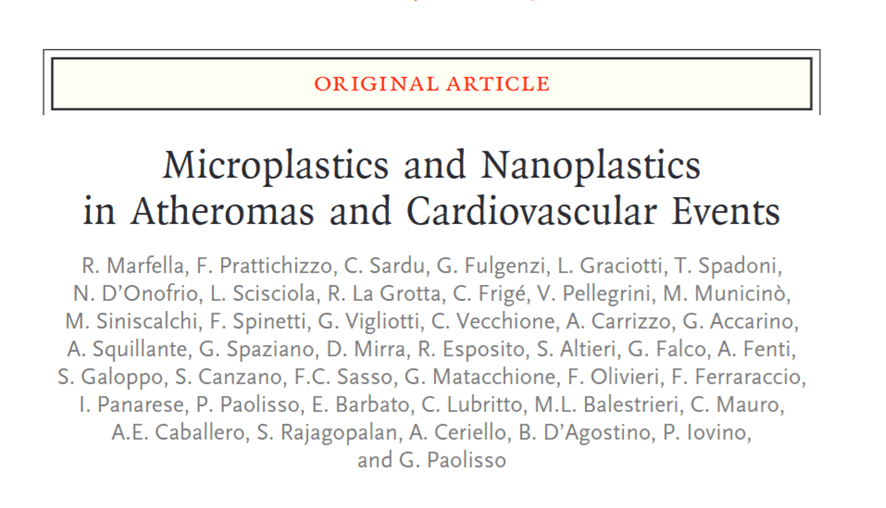 En términos cualitativos, el análisis por pirólisis, cromatografía de gases y espectrometría de masas indicó que, entre las 11 MNP analizadas, se detectaron polietileno y cloruro de polivinilo en la placa carotídea en cantidades de microgramos (μg por miligramo de placa). Estudios previos que utilizaron la misma tecnología mostraron que se encontró polietileno en aproximadamente el 25% de las muestras de sangre completa derivadas de voluntarios sanos, con una concentración máxima de 7,1 μg por mililitro. 12 Otros estudios han sugerido que el polietileno y el cloruro de polivinilo también fueron las MNP más abundantes encontradas en la leche materna y la orina humanas, 10,11 con fibras de polietileno observadas en el tejido pulmonar humano en una concentración de 1 partícula por gramo de tejido. 8 También se ha demostrado la presencia de cloruro de polivinilo en un número constante de muestras de hígado obtenidas de pacientes con enfermedad cirrótica, en el rango de unas pocas partículas por gramo de tejido. Se ha informado que los nanoplásticos de polietileno inducen una variedad de efectos nocivos en el sistema cardiovascular en embriones de pez cebra, promoviendo el desarrollo de derrames pericárdicos, la inhibición de la angiogénesis y la inducción de un estado protrombótico. 27 Hay datos similares disponibles de estudios de los efectos del cloruro de polivinilo. 28 Sin embargo, en la mayoría de los estudios preclínicos, se evalúan altos niveles de MNP, órdenes de magnitud más allá de los observados en el presente estudio, un factor que dificulta la extrapolación de la relevancia de los hallazgos preclínicos para los humanos.