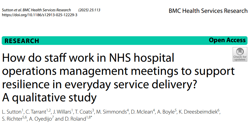 El modelo Conceptos para la aplicación de la resiliencia (CARE) [ 6 ] describe la resiliencia como la implicación de adaptaciones y ajustes en el trabajo diario, y Anderson et al. destacan la importancia de la capacidad de adaptación para la resiliencia: la capacidad de las organizaciones y los sistemas de atención sanitaria para realizar adaptaciones y ajustes ante la demanda y la capacidad fluctuantes, con el fin de brindar una atención segura y de alta calidad de manera constante [ 6 ]. abogamos por la necesidad de pasar de un enfoque en la resiliencia en relación con la prestación de atención clínica por parte de los profesionales de la salud a un enfoque en el papel de los gerentes, las juntas de hospitales y otros actores que desempeñan un papel clave en la resiliencia organizacional más allá de la prestación de atención de primera línea [ 7 ]. Se ha prestado mucha atención a la resiliencia del sistema de salud frente a desastres o choques graves como la pandemia de Covid-19 [ 8 ]. Sugerimos la necesidad de prestar más atención a la resiliencia en el contexto de presiones crónicas, como los altos niveles de demanda a los que se enfrenta la atención aguda hospitalaria: las «presiones invernales» que siguen sintiéndose todo el año [ 9 ]. En este estudio, nuestro objetivo fue explorar el trabajo que realizó el personal en las reuniones de gestión de operaciones para apoyar la resiliencia en la prestación de servicios día a día.