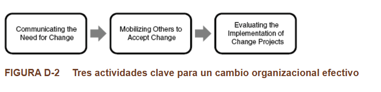 | Estructuras y sistemas para apoyar el cambio | Se necesitan estructuras (especialmente incentivos) y sistemas (especialmente sistemas de información) para promover el cambio y mejorar el desempeño organizacional. |