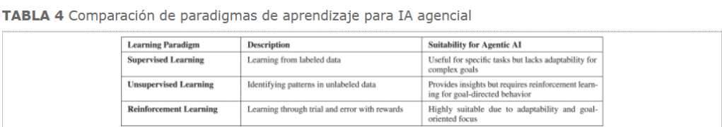 TABLA 4 Comparación de paradigmas de aprendizaje para IA agencial