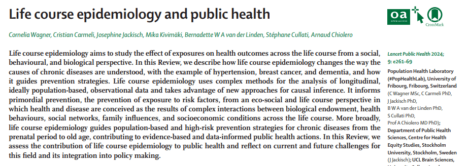 En las últimas tres décadas, la investigación en epidemiología del ciclo vital ha experimentado un auge. El origen de muchas enfermedades crónicas se remonta ahora a la infancia, lo que permite nuevas estrategias de intervención dirigidas a momentos específicos del ciclo vital. Con ejemplos de investigaciones sobre hipertensión, cáncer de mama y demencia, hemos descrito cómo este campo ha evolucionado desde la idea de la programación fetal y los hallazgos de la epidemiología social hasta un enfoque de investigación multidisciplinario que fundamenta la formulación de políticas de salud pública.