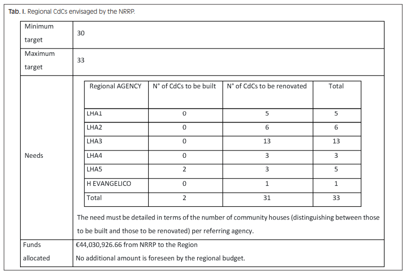 CdC regionales previstos por el NRRP.