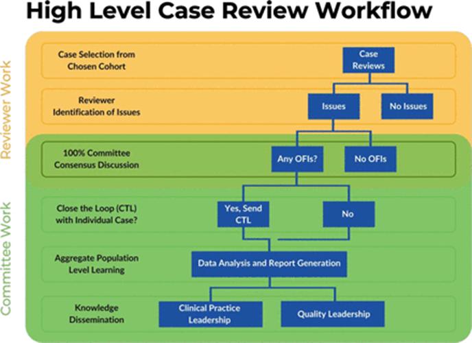 Los casos secuenciales o seleccionados al azar dentro de una cohorte se asignan a al menos dos revisores de casos de diferentes disciplinas (p. ej., una enfermera y un médico).