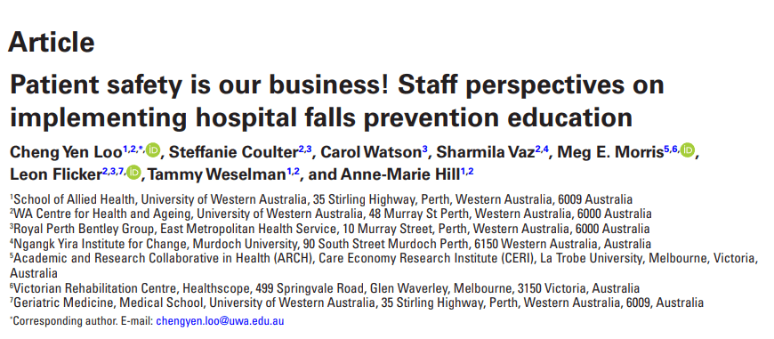 Se presenta además un trabajo que se basa en el artículo “¡La seguridad del paciente es nuestro negocio! Perspectivas del personal sobre la implementación de la educación para la prevención de caídas en hospitales” de Cheng Yen Loo, Steffanie Coulter, Carol Watson, Sharmila Vaz, Meg E. Morris, Leon Flicker, Tammy Weselman y Anne-Marie Hill, así como en la literatura científica sobre prevención de caídas y seguridad hospitalaria.