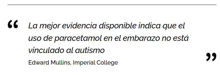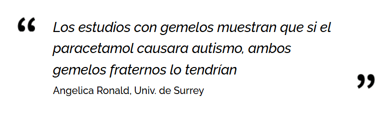 Este trabajo realizado en Suecia, no encuentra relación entre paracetamol e incremento de autismo. Esta comunicación del Departamento de Salud de los Estados unidos relaciona la ingesta del analgésico con autismo.