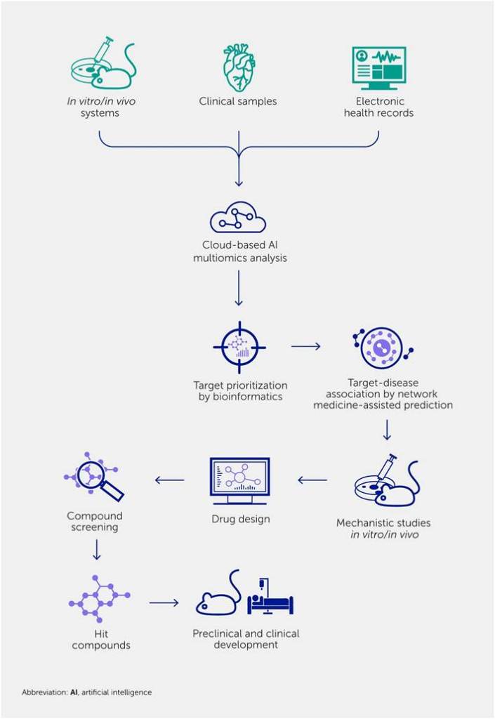 En paralelo con la evidencia clínica, los hallazgos de conjuntos de datos de secuenciación de ARN de células individuales han sugerido que cada tipo celular asociado con la ECV, como los macrófagos, representa una población heterogénea ( 58-66 ). El equilibrio entre subconjuntos de células inmunitarias (p. ej., subpoblaciones de macrófagos proinflamatorios frente a antiinflamatorios) en un microambiente local, como la placa aterosclerótica, puede determinar el riesgo de progresión de la enfermedad o la aparición de complicaciones clínicas (p. ej., infarto de miocardio) ( 67 , 68 ) . A medida que surgen nuevas tecnologías capaces de realizar un cribado imparcial para el descubrimiento de dianas terapéuticas (p. ej., proteómica plasmática de muestras clínicas y secuenciación de ARN de células individuales en tejidos cardiovasculares o sangre), los conjuntos de datos generados posteriormente se vuelven más grandes y complejos ( 69 , 70 ). Para identificar nuevas dianas prometedoras a partir de grandes conjuntos de datos que analizan factores complejos, debemos emplear plataformas analíticas capaces de procesar la ingente cantidad de datos generados ( 71 ).