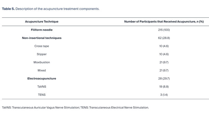 Tabla 5. Descripción de los componentes del tratamiento de acupuntura.