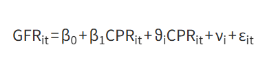 iEl término de error (ε) del lado derecho captura las partes residuales no explicadas del modelo, que no pueden explicarse por cambios en el uso de anticonceptivos, como el aborto. La primera parte del lado derecho de la ecuación captura el efecto del uso de anticonceptivos en la reducción de la fecundidad entre 2000 y 2023.Reconocemos que la relación entre la TFG y el uso de anticonceptivos depende del contexto. La eficacia del uso de anticonceptivos varía significativamente entre países, dependiendo de la práctica de métodos más eficaces, como la esterilización, los implantes, los inyectables y los dispositivos intrauterinos. Para abordar dicha heterogeneidad entre los países