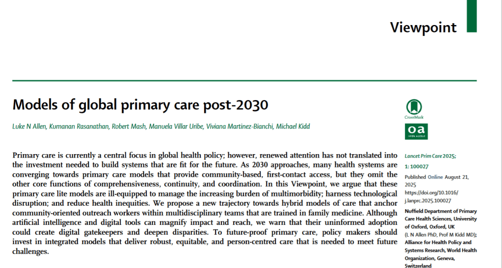 La inversión estructural en gobernanza, financiación, instalaciones, suministros e infraestructura digital es tan importante como la expansión de la fuerza laboral para una atención primaria preparada para el futuro.