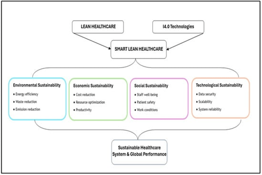 Desde la perspectiva económica, LH–I4.0 reduce tiempos de espera, elimina actividades innecesarias y optimiza recursos. Socialmente, mejora la satisfacción y seguridad de personal y pacientes. Ambientalmente, promueve operaciones más ecológicas y eficientes. Tecnológicamente, impulsa la madurez digital, la ciberseguridad y la interoperabilidad, fortaleciendo la resiliencia de infraestructuras médicas.