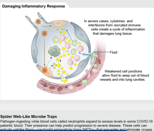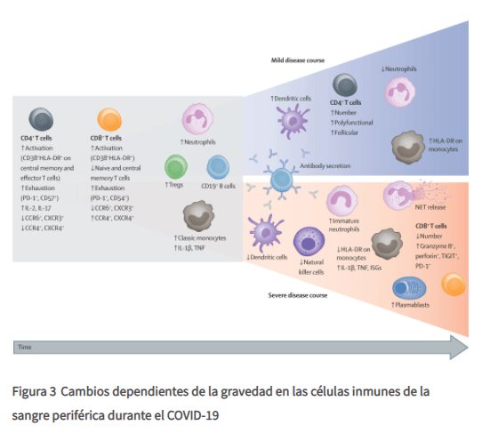 Los pacientes con COVID-19 con frecuencia tienen neutrofilia leve y linfopenia de células T, lo que resulta en un aumento de la relación entre neutrófilos y linfocitos,144, 205 que es un marcador de pronóstico útil para la gravedad COVID-19.206 Otros subconjuntos de leucocitos también sufren características, aunque más heterogéneas, fluctuaciones y trayectorias(figura 3).