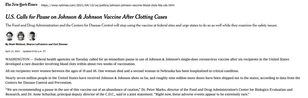 Lo que era una sospecha preocupante hace 4 semanas es ahora ampliamente aceptado: La vacuna AstraZeneca COVID-19 puede, en casos muy raros, causar un trastorno caracterizado por coágulos sanguíneos peligrosos y recuentos bajos de plaquetas. En Europa, se han notificado al menos 222 casos sospechosos entre 34 millones de personas que han recibido su primera dosis de la vacuna. Más de 30 han muerto.