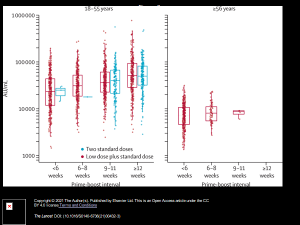 Los estudios patrocinados por la Universidad de Oxford se planificaron inicialmente como estudios monodosis, pero fueron modificados para incorporar una segunda dosis después de la revisión de los datos de inmunogenicidad de fase 1, que mostraron un aumento sustancial en la neutralización de anticuerpos con una segunda dosis de vacuna.12 Después de dar su consentimiento inicialmente para participar en un estudio de una sola dosis, algunos participantes optaron por no recibir la segunda dosis, proporcionando una cohorte auto-seleccionada de receptores de dosis únicas. Además, debido al tiempo necesario para fabricar la segunda dosis, hubo retrasos en la administración de la segunda dosis para un gran número de participantes en el ensayo que recibieron el calendario de dos dosis. Estas dos situaciones proporcionan la oportunidad de explorar la inmunogenicidad y eficacia de una sola dosis de vacuna, y el efecto de un intervalo prolongado antes de la administración de la segunda dosis. Además, los datos de un mes adicional de seguimiento ya están disponibles para su inclusión en el análisis, proporcionando una mayor precisión en las estimaciones debido al mayor número de casos de análisis en comparación con el informe anterior.