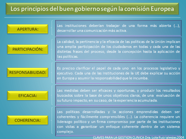 Se precisa del buen gobierno, incluido en el concepto todavía más amplio de instituciones, término que se define como el conjunto de restricciones creadas por el hombre para regular sus intercambios políticos, sociales y económicos y que incluye reglas sociales de juego informales, como tradiciones y costumbres. Ortun Rubio 2009.