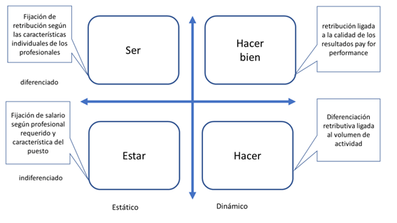 3. la evaluación del desempeño y los incentivos aplicados a los resultados, con modificación de las formas de pago