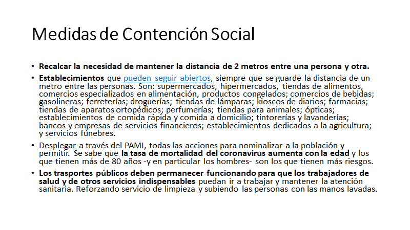 Siguiendo al mismo tiempo Aislamiento social, contención, mitigación, cambio del modelo prestador y medidas se sostén formal.