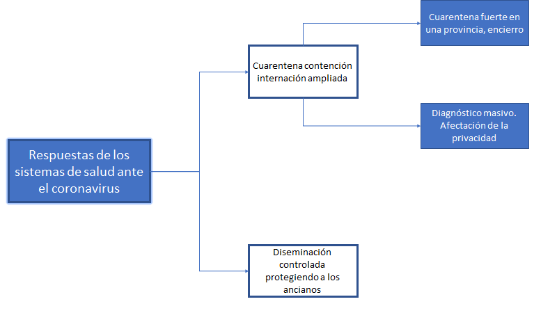 si en cambio en un modelo epidemiológico tradicional debería afectar al 60 % de la población, para cortar la curva epidémica, dando unos números muy altos como un millón de personas, 50.000 requerirían unidades de cuidados intensivos, que lleva a 5000 camas de uti en total, con una mortalidad esperada de 20 %, de estos pacientes pero esto es muy relativo y dependiente de las otras acciones.