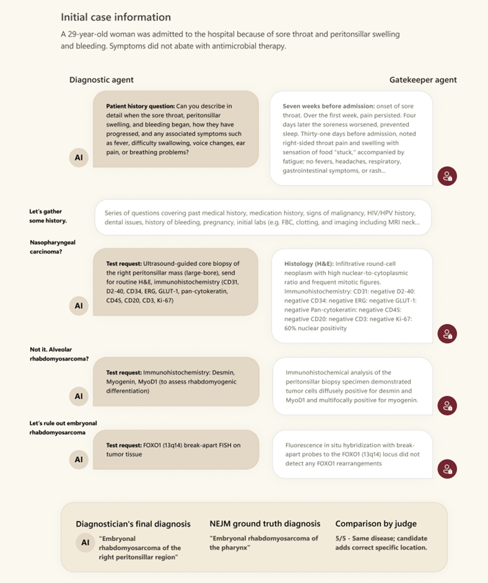 El equipo de IA de Microsoft comparte una investigación que demuestra cómo la IA puede investigar y resolver de forma secuencial los desafíos de diagnóstico más complejos de la medicina: casos que los médicos expertos tienen dificultades para responder.