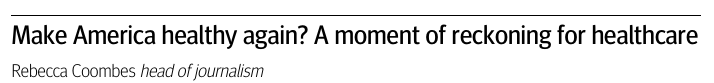 Mientras tanto, la frustración pública con las aseguradoras ha sido evidente tras el asesinato de Brian Thompson, director ejecutivo de UnitedHealthcare (UHC) (doi:10.1136/bmj.q2879).2 Ha expuesto la alta tasa de denegación de cobertura de seguro del gigante de la salud y la miseria que esto ha causado. El hecho de que Luigi Mangione, acusado del asesinato, dejara una nota en la que acusaba al sistema sanitario estadounidense de corrupción y codicia ha sido ampliamente difundido y reflejado en las redes sociales. La puesta en la picota de la UHC en el mes transcurrido desde el asesinato de Thompson, y la asombrosa falta de simpatía pública por el asesinato (en una encuesta reciente, el 41% de los jóvenes de 18 a 29 años consideraron que el asesinato era aceptable), es un momento de ajuste de cuentas para la industria.