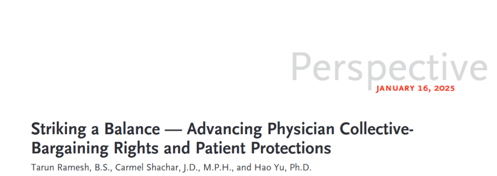 Entre los países de la Organización para la Cooperación y el Desarrollo Económicos, Corea del Sur y los Estados Unidos tienen algunos de los números más bajos de médicos por cada 1.000 habitantes. Por lo tanto, la negociación colectiva y las huelgas podrían tener mayores efectos en estos países que en otros. En medio de la reciente actividad huelguística, los responsables de las políticas estadounidenses podrían incorporar las lecciones de otros países para equilibrar mejor los derechos de negociación colectiva de los médicos y las protecciones de los pacientes. El tratamiento de los empleados de hospitales bajo la ley laboral estadounidense ha sido complejo e inconsistente.