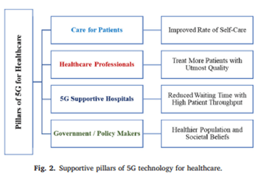 5G se refiere a la tecnología de red inalámbrica y ha abierto nuevas posibilidades de atención médica en innovación y acceso ampliado al tratamiento. La tecnología 5G es un requisito previo para la interconexión de todo en la atención médica inteligente. Este artículo estudió el 5G, las principales características inteligentes y los pilares útiles de esta tecnología para la atención médica. El documento también identifica y discute aplicaciones significativas de 5G para la atención médica. En el futuro, 5G ayudará a las personas a controlar adecuadamente su salud.